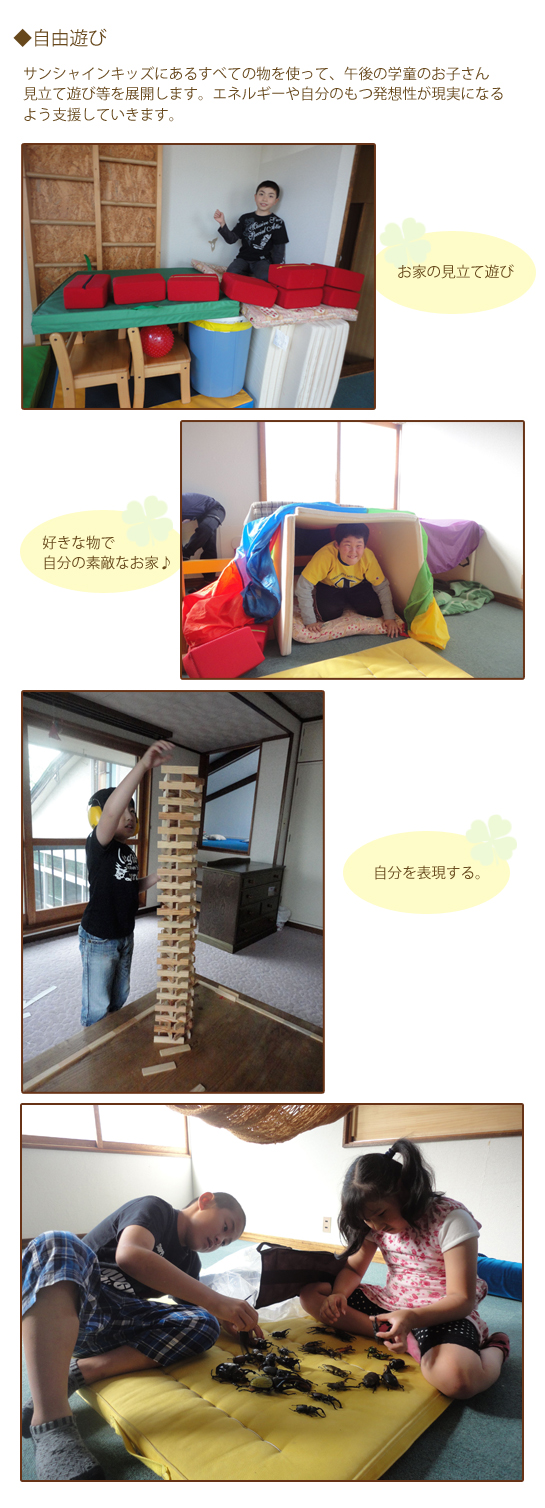 午後からの活動は、主に放課後等デイサービス(就学後のお子様が対象)です。