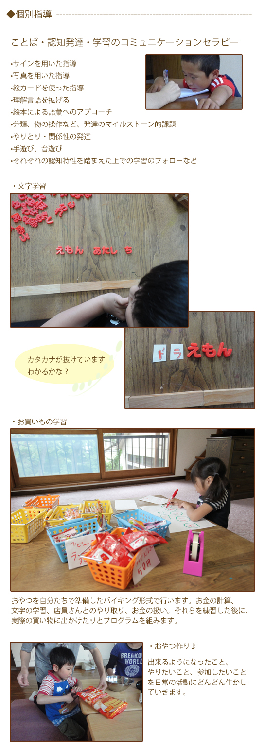 個々のお子さんに主眼をあてながら支援を行うとともに、それを小集団で実現していく事を考えます。