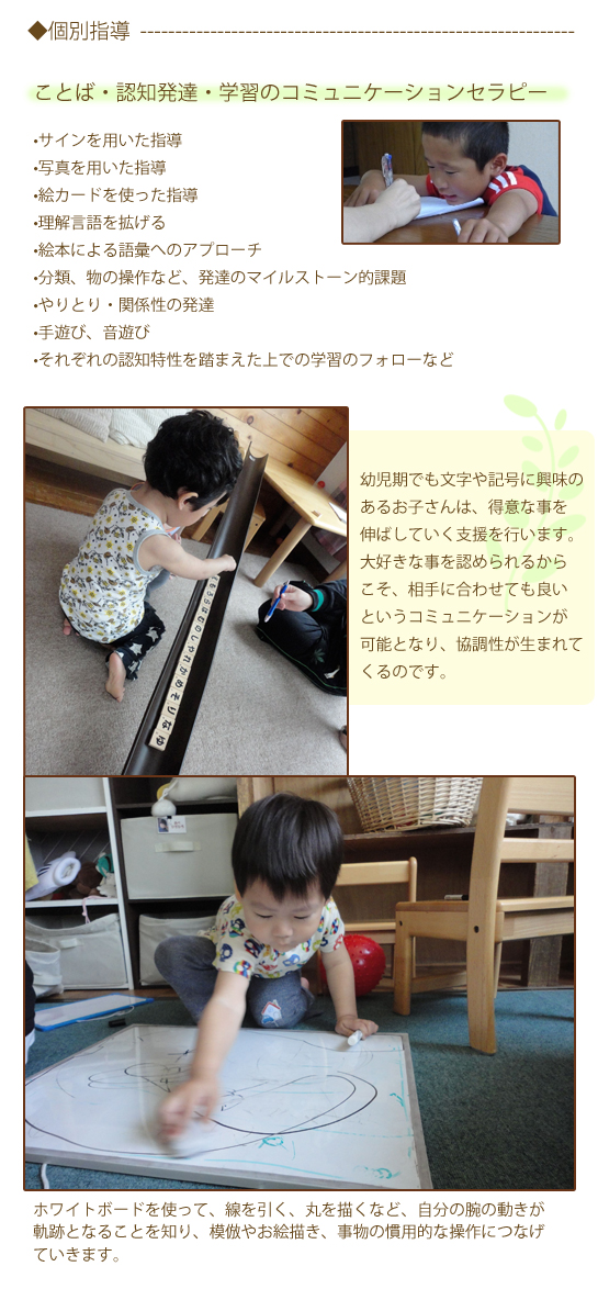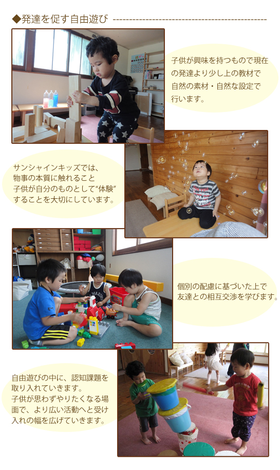 幼児期から人とのコミュニケーションを学ぶことで、言葉・認知・情緒の発達などを促していきます。